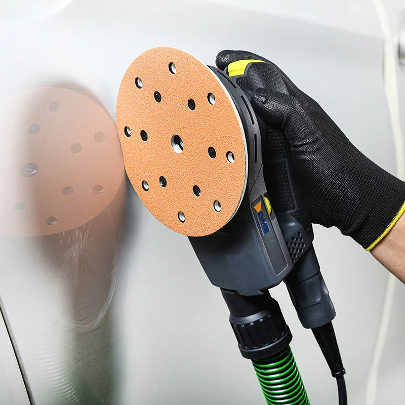 व्यावसायिक सँडिंग परिस्थितींच्या पर्यावरणीय आणि गुणवत्तेच्या गरजा पूर्ण करण्यासाठी, B235 ऑरेंज सँडपेपर मानक डस्ट सक्शन होल पॅटर्नची अनेक वैशिष्ट्ये ऑफर करते. या छिद्रांचे नमुने फ्लुइड डायनॅमिक्स सिम्युलेशनद्वारे ऑप्टिमाइझ केले जातात आणि मुख्य प्रवाहातील औद्योगिक धूळ काढण्याच्या उपकरणांशी कार्यक्षमतेने जुळले जाऊ शकतात, ज्यामुळे सँडिंग दरम्यान 90% पेक्षा जास्त रिअल-टाइम धूळ काढण्याची कार्यक्षमता प्राप्त होते.