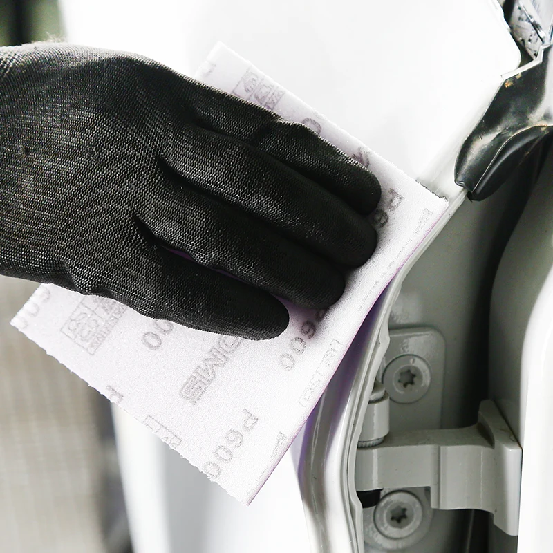 या B938 पर्पल सिरॅमिक सँडिंग स्पंज रोलमध्ये विशेष डिझाइन केलेल्या कोटिंगसह अँटी-क्लोगिंग डिझाइन वैशिष्ट्यीकृत आहे जे सँडपेपरच्या चिरेमध्ये सँडिंग मलबे अडकण्यापासून प्रभावीपणे प्रतिबंधित करते. अशा प्रकारे, सँडपेपरवरील अपघर्षक दाणे अबाधित राहतील. सँडिंग करताना तुम्ही अडकणार नाही आणि तुम्ही सर्व वेळ सुरळीतपणे काम करू शकता. या डिझाईनमुळे सँडपेपरला सतत ऑपरेशनच्या दीर्घ कालावधीतही मजबूत कटिंग परफॉर्मन्स राखता येतो, ज्याचे आयुष्य उद्योगाच्या सरासरीपेक्षा लक्षणीय आहे. दुसऱ्या शब्दांत, B938 सँडपेपरची एकच शीट अधिक वर्कपीस वाळू शकते, ज्यामुळे केवळ उत्कृष्ट उत्पादन मूल्यच नाही तर प्रति-वापर खर्चात लक्षणीय घट देखील होते.